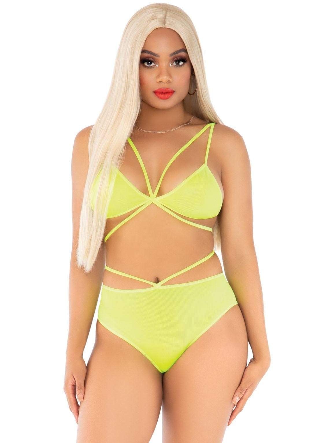 Get you a set that can do it all, from hot lingerie set to flirty rave outfit, this bra set by Leg Avenue makes being versatile look easy. Featuring a cage bralette with double back strap detail and a strappy high waist bikini bottom, this sexy outfit can take you from summer looks to cute lingerie outfit with ease.