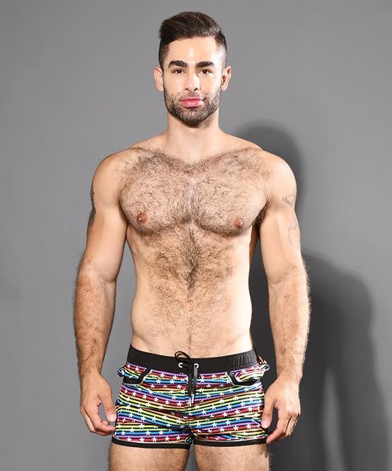 Show your pride with the stellar new Pride Stars Swim Shorts! This cute rainbow design with cute contrast details is something every gay man needs. Each pair features our signature slimming waistband, this time in soft elastic with a contrast drawstring! Hit the beach or just chill by the pool in these cute new shorts!