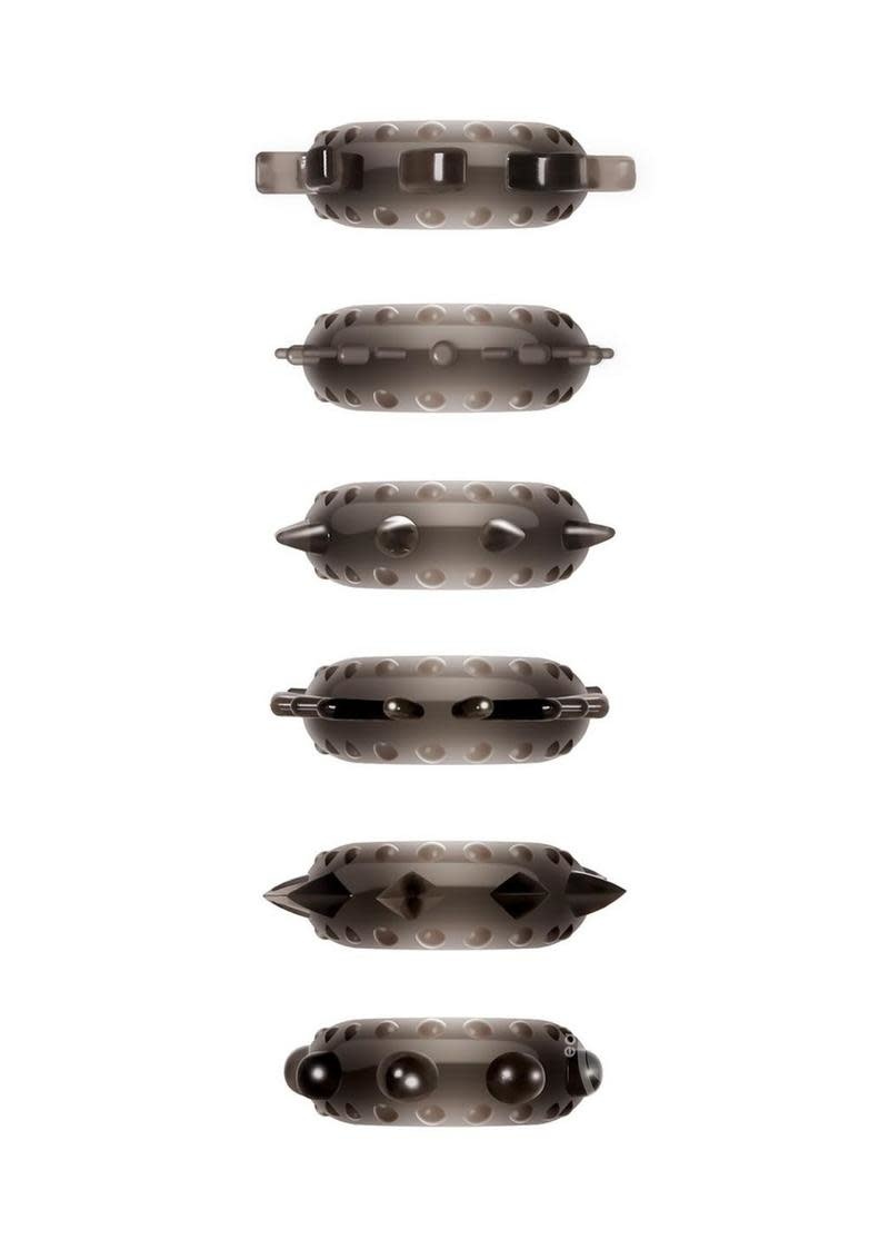 • 9-piece penis ring sampler kit