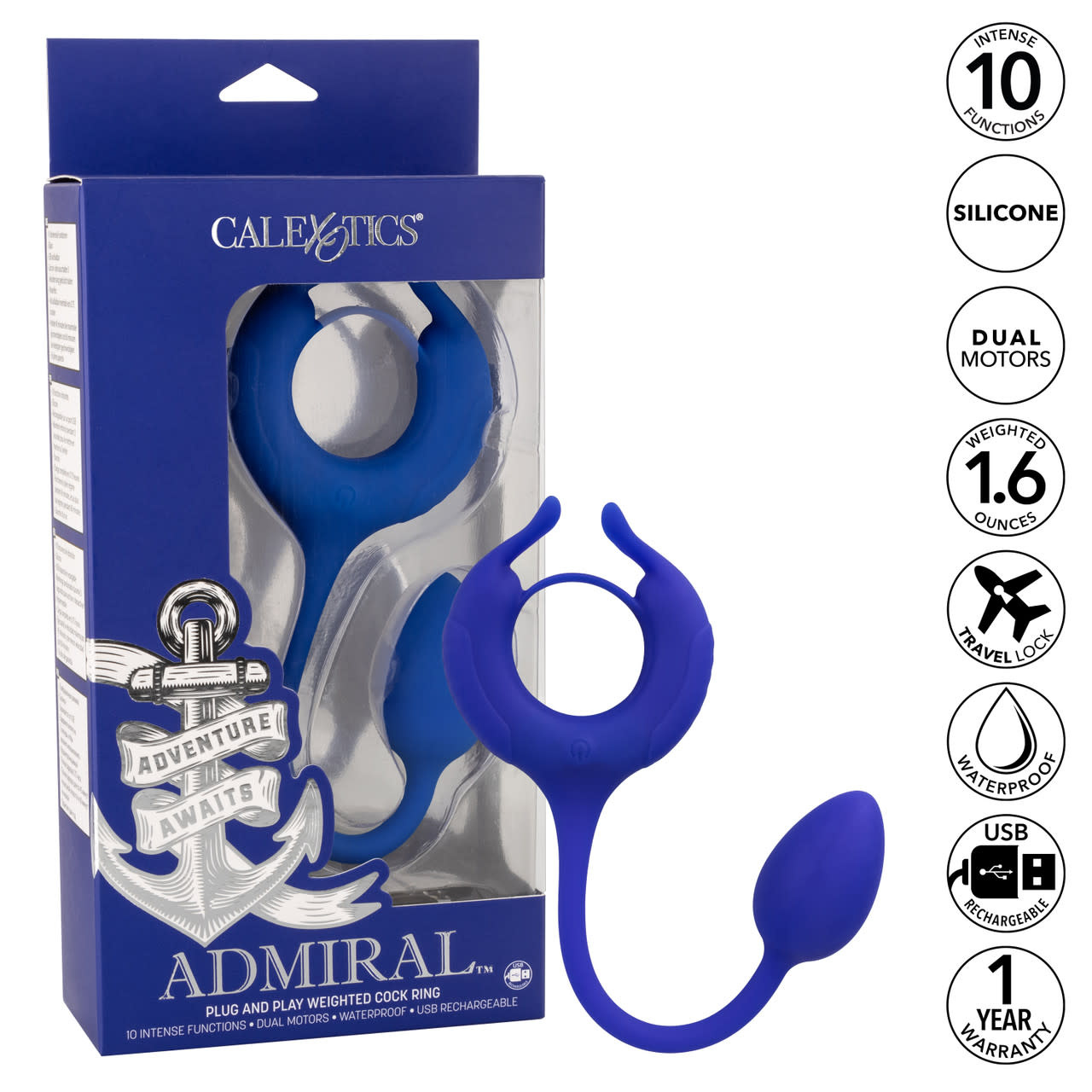 The Admiral™ Plug and Play Weighted Cock Ring will send you and your lover swinging into ecstasy. The stretchy Silicone vibrating enhancer has unique teasers, added weight egg, and 10 functions of powerful vibrations.