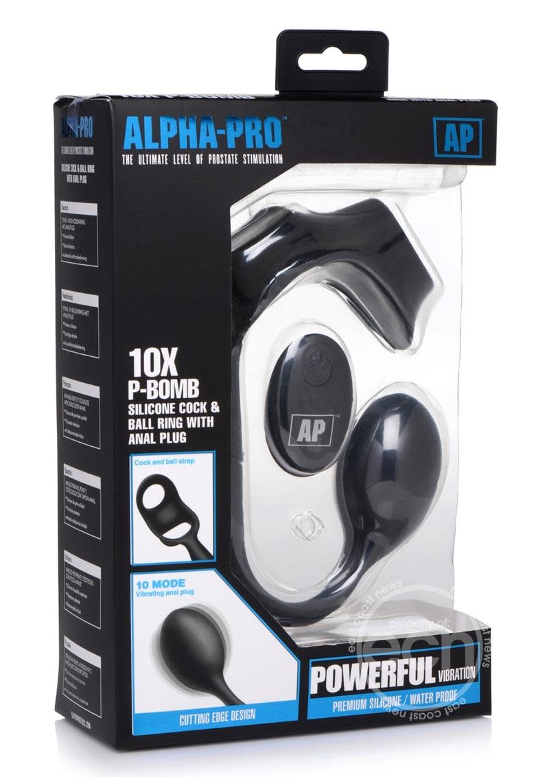 ALPHA PRO 10X P-BOMB SILICONE RECHARGEABLE REMOTE CONTROL COCK & BALL RING WITH PLUG