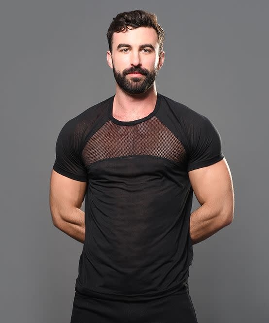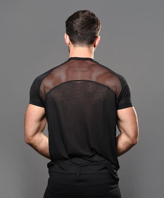 Your perfect companion for a night out on the town, our bold and sleek new City Tee has arrived. This modern yet sexy design was inspired by the latest urban trends in minimalism and masculinity. With its stylish soft semi-transparent Burnout fabric, stunning mesh details, and slimming cut with a form-fitting design, this will quickly become your favorite top. Pair with our matching City bottoms to complete the look.
