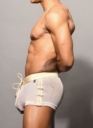 Designer Andrew Christian's creative vision breaks free with the new UNLEASHED Nude Mesh Shorts. This sophisticated yet sexy style is totally unique and very you. Show off everything you've got while looking chic and unleash your desires. Plus, thanks to the limited edition mesh design, sexy nude fabric, slimming drawstring waistband, and form-fitting cut, this will quickly become your favorite pair of shorts. Put this on for your next trip to the gym, beach, or club, and all the guys will be thankful you did!