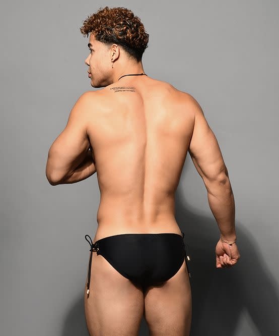 Free yourself from the shackles of boring swimwear. Designer Andrew Christian's creative vision comes to life with the new UNLEASHED Collection. Unleash yourself with our new UNLEASHED Side Lace Bikini swimwear. This flattering and slimming style comes in sexy black with a boldly unique side lace design. Plus, with this bikini, we’ve virtually eliminated sticking, squashing, re-adjusting, sweating, and chafing. When you pull them on, your package will fall in naturally to our amazing signature flat pouch with a fun snuggle fit. You’ll have a truly enjoyable and unique wearing experience.