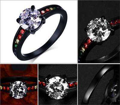 BLACK STAINLESS RAINBOW STONES WITH CENTER CZ RING
