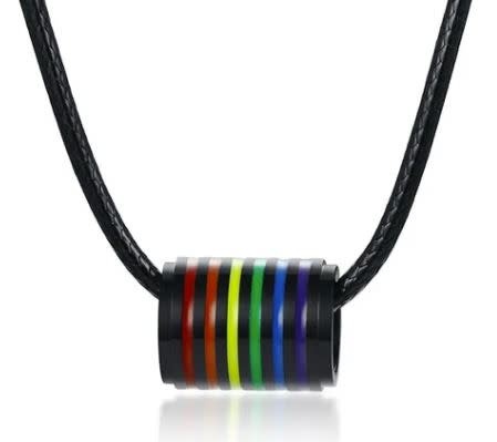 BLACK STAINLESS STEEL MATTE FINISH RAINBOW STRIPED TUBE PENDANT NECKLACE