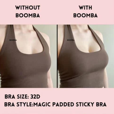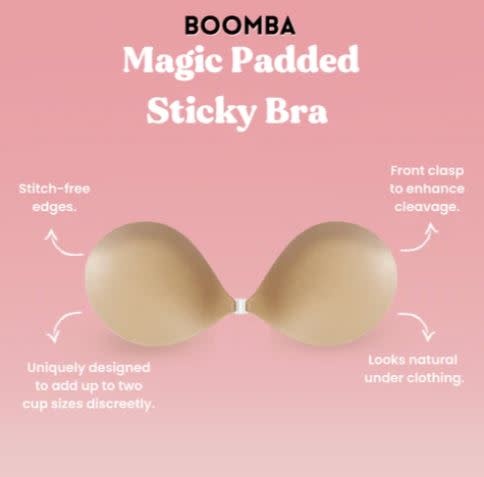 BOOMBA’s Magic Padded Sticky Bra is uniquely designed to add cup sizes discreetly.