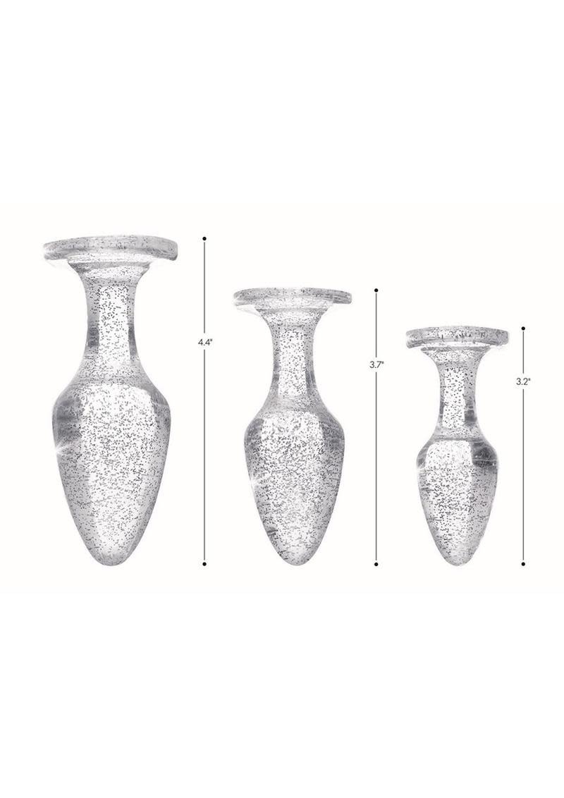 Expert anal players will appreciate the ease of which to warm up their ass for further fun with this Glittery set of plugs! Choose the size that matches your comfort level and surprise your lover when you pull your pants down with this dazzling anal gem!