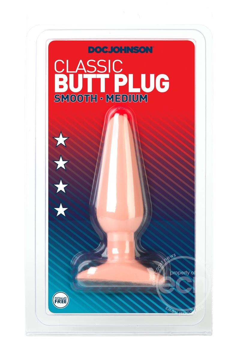 A classic toy for beginners, Doc Johnson's 5 inch Butt Plug has a smooth tear-drop shape ideal for first-time insertion, with 5 inches of girth. The tapered body gives a comfortable feeling and flared base holds the toy secure. Made from PVC, phthalate-free body safe material. Available in White and Black. Proudly Made in America