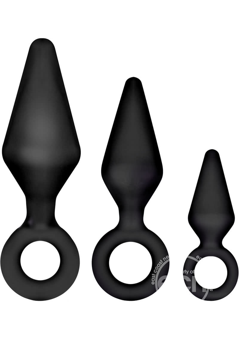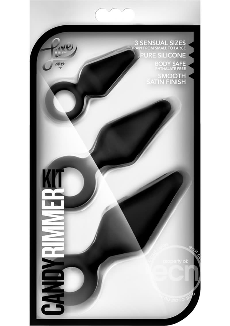 Luxe Candy Rimmer Kit Black 3 different size of butt plugs. Made using phthalate free materials. Length small butt plug 2.8 inches, medium butt plug 4.3 inches, large butt plug 5.2 inches. Insertion length small butt plug 1.75 inches, medium butt plug 3 inches, large butt plug 3.5 inches. Width small butt plug 1 inch, medium butt plug 1.3 inches, large butt plug 1.55 inches. Need a little training? Blush's Candy Rimmer kit comes with 3 plugs ranging from small to large. An anal training kit is the most effective way to get acquainted with anal play. Starting with the smallest size for beginners you can slowly graduate to the medium size then to the large size when you are fully comfortable. Use this kit if you and your partner want to try anal intercourse. Or just use it in addition to your regular erotic play. The ring/handle is used to manipulate and retrieve the Candy Rimmer and is also a safety measure to prevent over insertion. Made from Pure silicone with a smooth satin finish. It can be boiled for proper sanitizing. Comes with 3 sizes: Small, Medium and Large. Great for getting acquainted with anal play. Made from pure body safe silicone with a smooth satin finish. Convenient loop handle allows for easy retrieval and provides a safety measure to prevent over insertion. Made from pure body safe silicone and meets or exceeds international safety standards as set forth by CE and ROHS directives. Phthalate and latex free. It's your body be mindful of what you put in it.