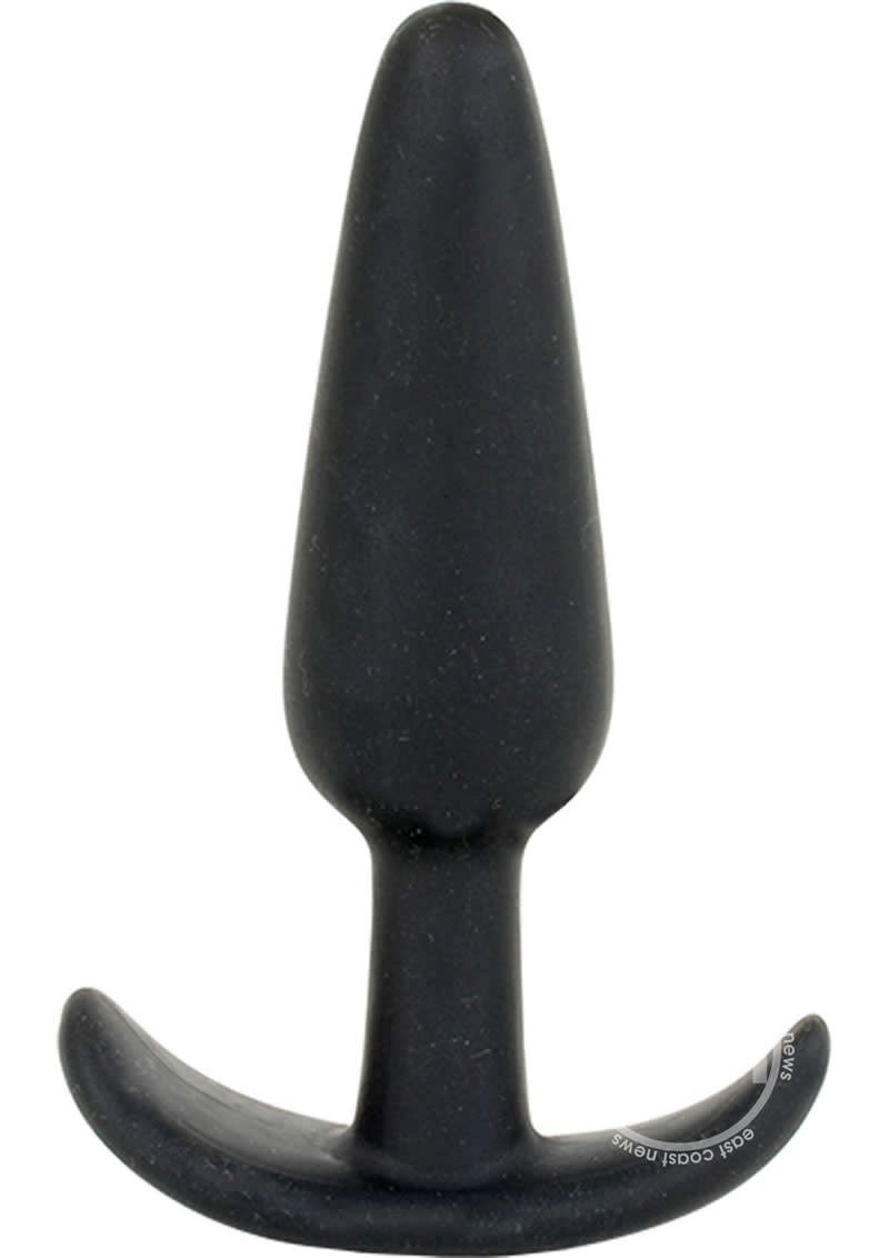 Mood Naughty Small Black Butt Plug doesn't everyone want to be a li'l naughty? Now you can regardless of your experience level. These soft silicone anal plugs come in 3 sizes that make being naughty feel very nice. Waterproof anal sex toy. Small size plug with curved t-base provides for safe use and helps to prevent sex toy from getting lost up there. Non-vibrating butt plug is made using phthalate free, non-toxic materials ABS base, TPE Silicone shaft. Small butt plug measures 3 inches long. Mood Naughty Small Black Butt Plug by Doc Johnson Novelties.