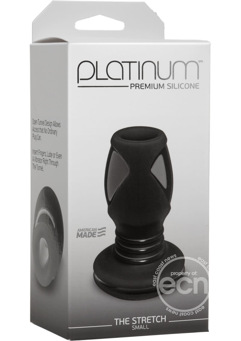 Platinum Premium The Stretch Small Black. Explore your partners backdoor with this open tunnel anal plug from the Platinum Premium Silicone collection! Firm yet flexible, The Stretch Small delivers the satisfying filling sensation of a regular plug, but also features a hollow-bodied design allowing access that no other plug can. Insert fingers, lube, or even a vibrator right through the tunnel, for endless possibilities in bedroom play! Made of health grade silicone, this plug reveals a two-tone finish for increased stimulation, a flat base for comfortable wear-ability, Color: Black. Total length 3.40 inches. Usable length 2.90 inches. Width/Diameter 1.70 inches. Circumference 5.34 inches. Proudly, made in America.