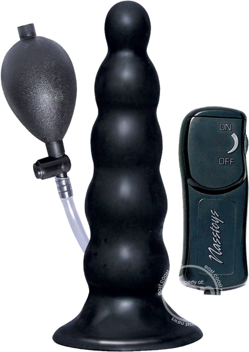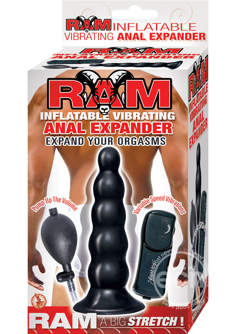 RAM is a big stretch! Ram Inflatable Vibrating Anal Expander expand your orgasms. Pump up the volume to super size. Variable Speed. Body safe, RoHS compliant materials: Plug Latex, Power Control ABS plastic, Bulb PVC. Butt plug measures: 5.5 inches long with a 1.375 inches diameter. Vibrating sex toy requires 2 AA batteries, not included. Do not leave batteries in the vibrator between uses. A water based lubricant is recommended. Always clean before and after use. Ram Inflatable Vibrating Anal Expander from Nasstoys of New York. The Ultimate Love Toy Company.