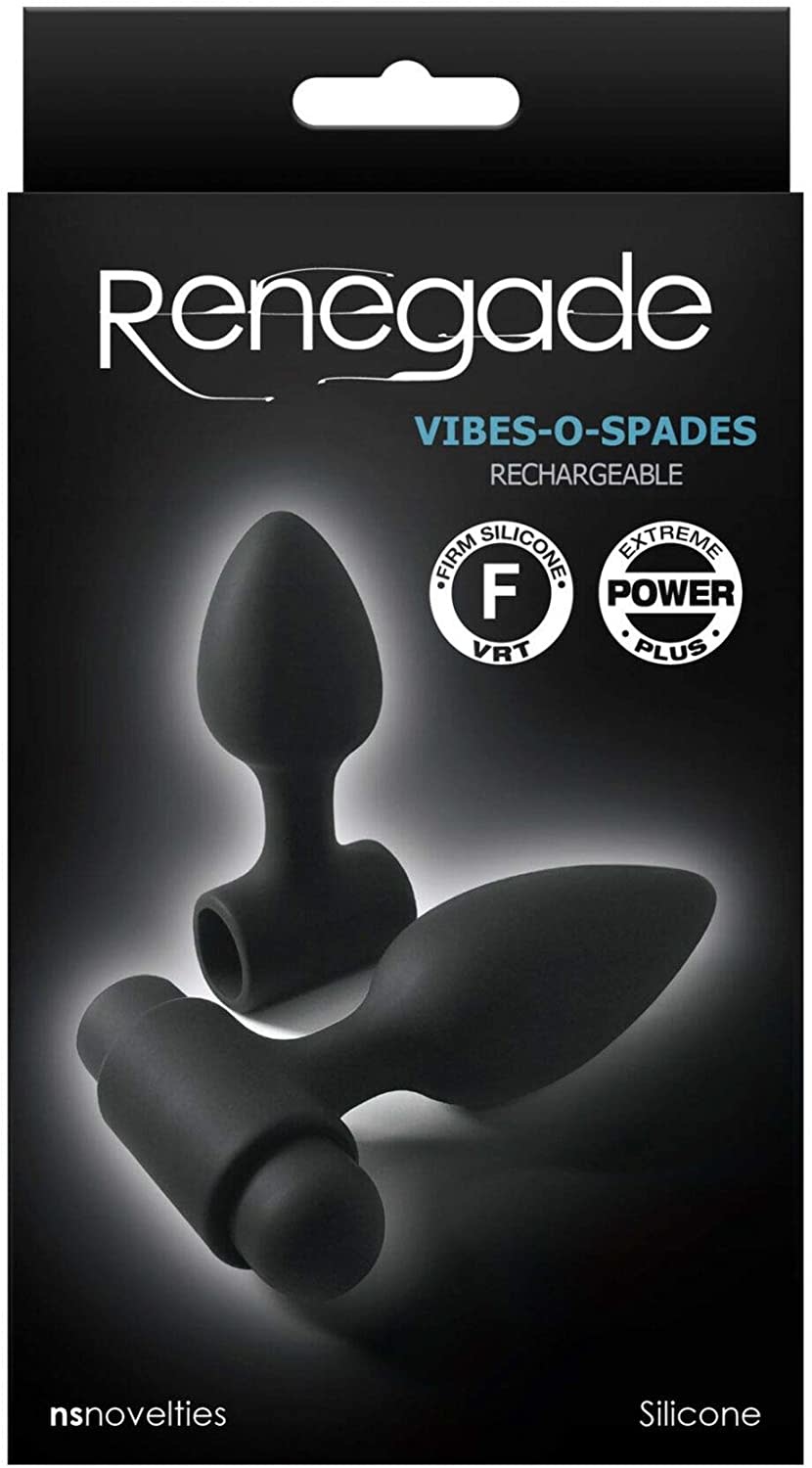 Renegade’s Vibes–O–Spades mini kit delivers quality, performance and versatility with two premium designed silicone anal toys with a shared mini vibrator. Water-resistant and rechargeable, mini vibrator and plugs are compatible with all lubricants.
