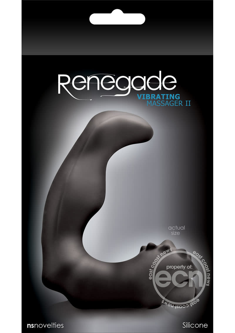 Renegade Vibrating Massager II Black by Renegade. Anatomically designed to stimulate erogenous zones, this massager uses a premium quality bullet to send waves of vibrations throughout the body. Made of silky feel silicone, the Renegade massager is a source of endless orgasms for him. This item is waterproof for play outside the bedroom. Made using phthalate free, non-toxic materials. Prostate massage, p-spot, male g-spot stimulator. Vibrating sex toy requires 3 LR44 cell batteries, included. Always clean before and after use. A water based lubricant is recommended. Renegade Vibrating Massager II Black from New Sensations Novelties. Packaged Weight 7.30 ounces.