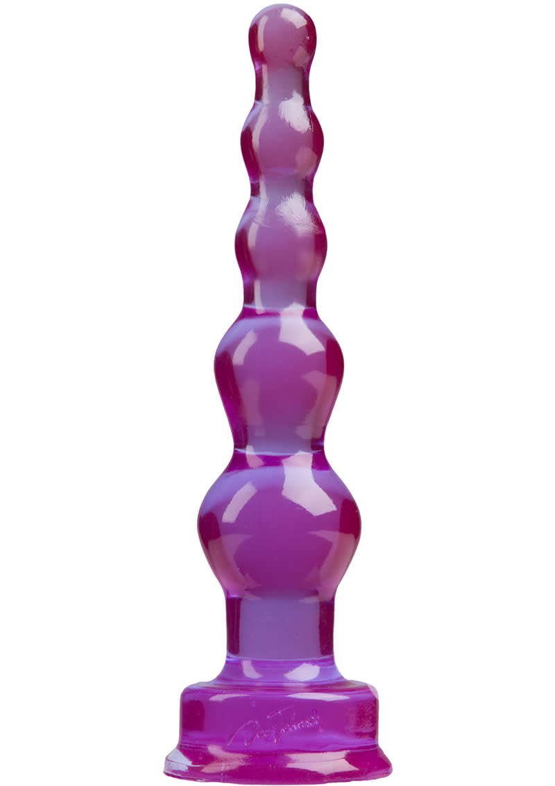 Spectragels Anal Tool Purple Jellies is a series of sensuous jelly, unique, enticing shapes for pure enjoyment. Anal Toy tool is a versatile probe for playful bedroom delight. The graduated bubbles are flexible and double as anal beads. Quintuple bubbles supply beginner to intermediate ass play. Affix the suction cup base for some eye popping butt bopping! Great for pussy play too! Made from 100% Phthalate Free. Purple Jelly Anal Tool. It is 7 inches long and less than 1 inch wide at the end and about 1.5 inches wide at the bottom largest bubble. A water based lubricant is recommended. Every product can effectively be cleaned with mild soap and water. Safe for anal, vaginal, g-spot and prostate massage. Doc Johnson Novelties Novelties, The Great American Toy Company. Made in the USA. 16