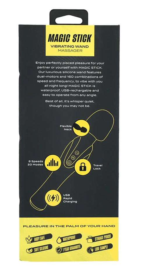 This Magic Stick brings a whole new meaning to “abracadabra”. With 8 speeds to choose from and 20 pulse patterns to explore, the Magic Stick is sure to put you under its sensual sorcery. A flexible neck allows this wand to bend to your body’s every whim while whisper-quiet vibrations keep your secret safe. USB Rechargeable, Waterproof, and phthalate-free, the Magic Stick conjures a climax with the flick of its ultra-soft head. Stow away your magic stick in the included storage pouch and enable the travel lock feature to ensure your Magic Stick stays put until its time to cast its next spell.