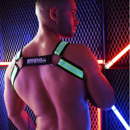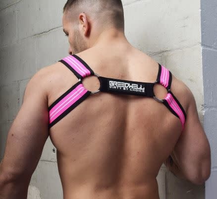 BREEDWELL’S HARNESSES are legendary and none more so than the classic bulldog style. Our new BRUT HARNESS mixes the masculine shape of the a bulldog harness with the sexy ferocity of our BRUT line of clothing. Featuring the soft jacquard stripe classic bulldog shape, a removable center strap with D-ring detail, and a PVC logo patch on both the back and front straps, the BRUT HARNESS stands alone as a signature piece or can be mixed and matched with the BRUT BRIEF, BRUT JOCK, EXPOSER JOCK, NSA JOCK, AXEL JOCK OR AXEL BRIEF.