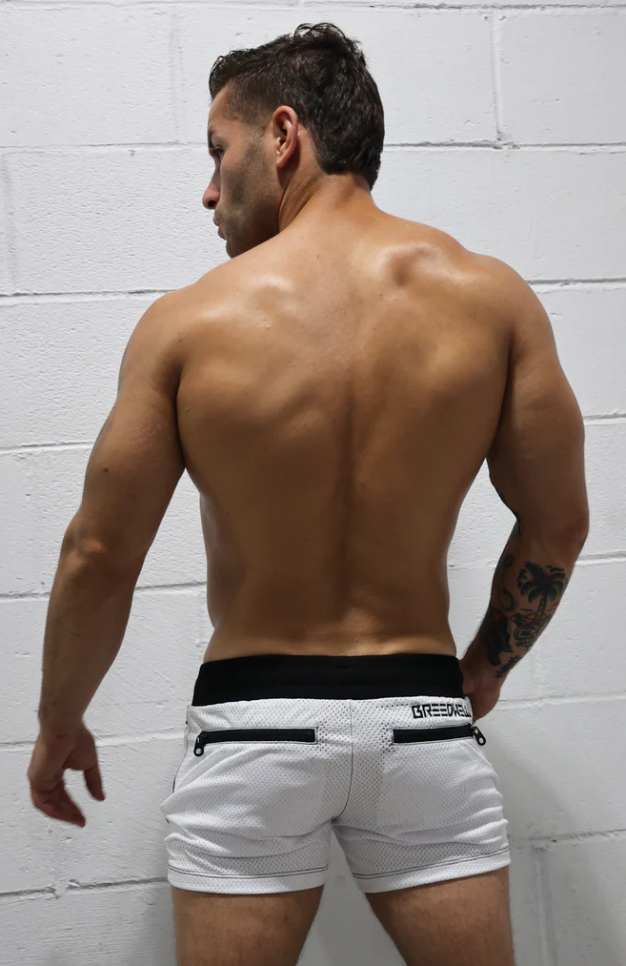 On those rare occasions when you don’t want to show your ass at brunch, we have the new HOOK UP SHORT. For the more modest BREEDWELL man, the shorts feature four zipper pockets to hold your valuables (or four bottles of poppers), a  embroidered logo on the back, full lining, a heavy-weight waistband (for rough play), suspender clips, and a thick drawcord (to match your thick cord). The shorts are available in WHITE and PURPLE. Get one of each and stop worrying about loosing your favors when your on your knees.