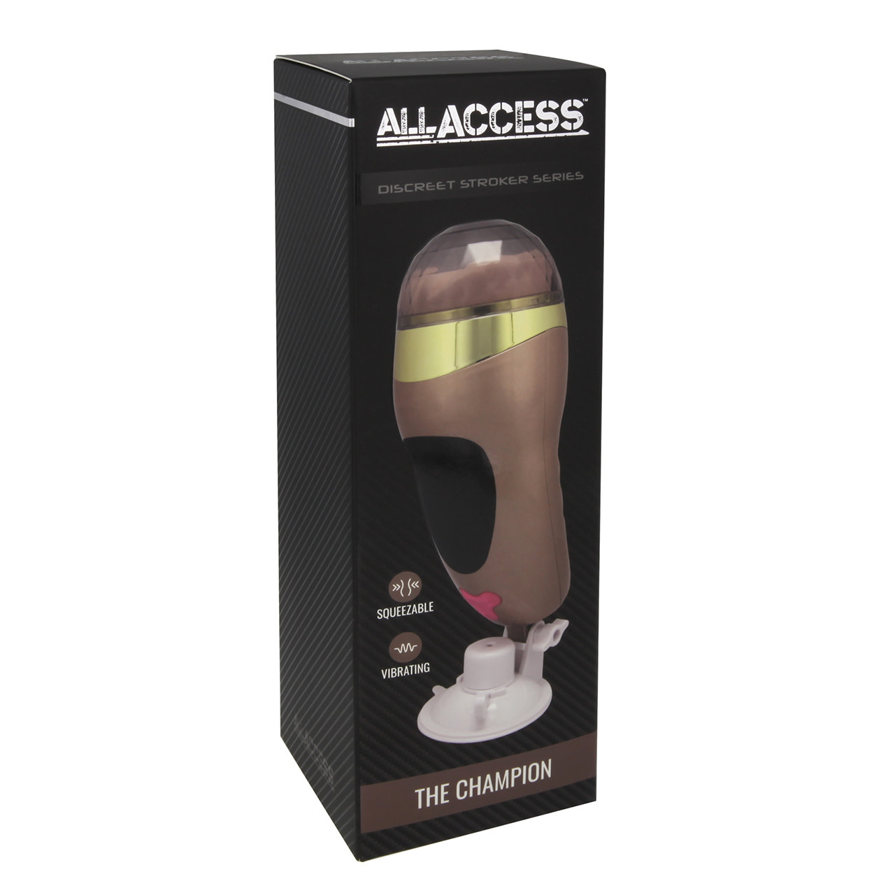 Discover pleasure from The Champion automatic masturbator by All Access! Completely USB rechargeable, select either of the 2 textured love chambers and then cycle through the 10 vibration patterns. The built-in squeeze panel lets you intensify your pleasure as you build to climax!