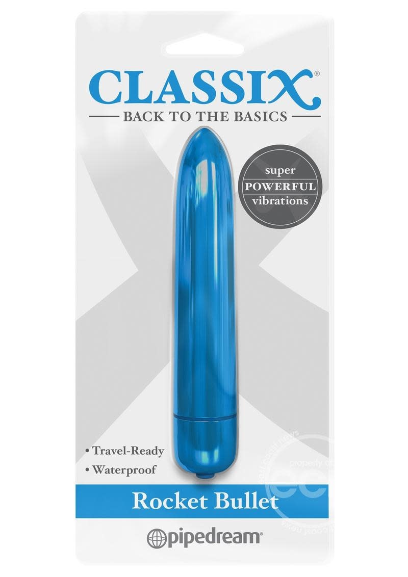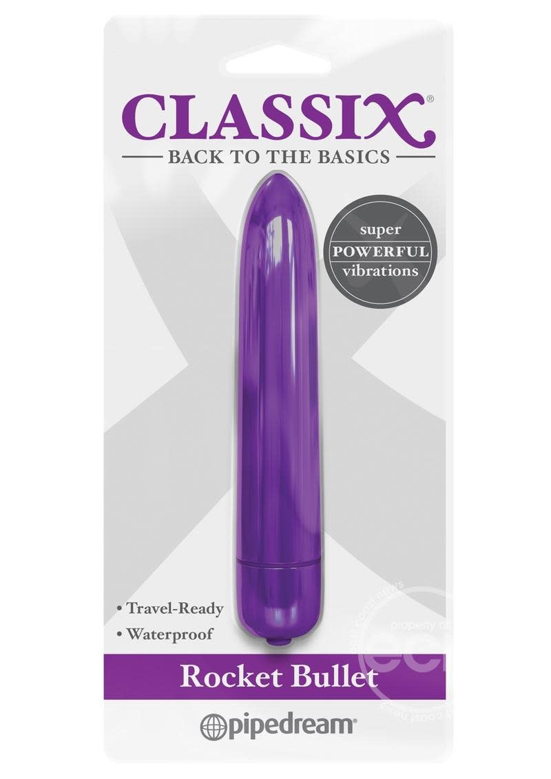 Indulge yourself with the simple pleasures of a classic! Versatile, simple and powerful, this Classix Vibrating Rocket Bullet is everyone’s essential sex toy! A press of the button activates intense vibration, while the smooth tip allows for easy pinpoint pleasure. The discreet size is perfect for travel and fun on-the-go. Try it in the spa or shower and turn bath time into bliss time! For optimum performance, remove batteries during storage.