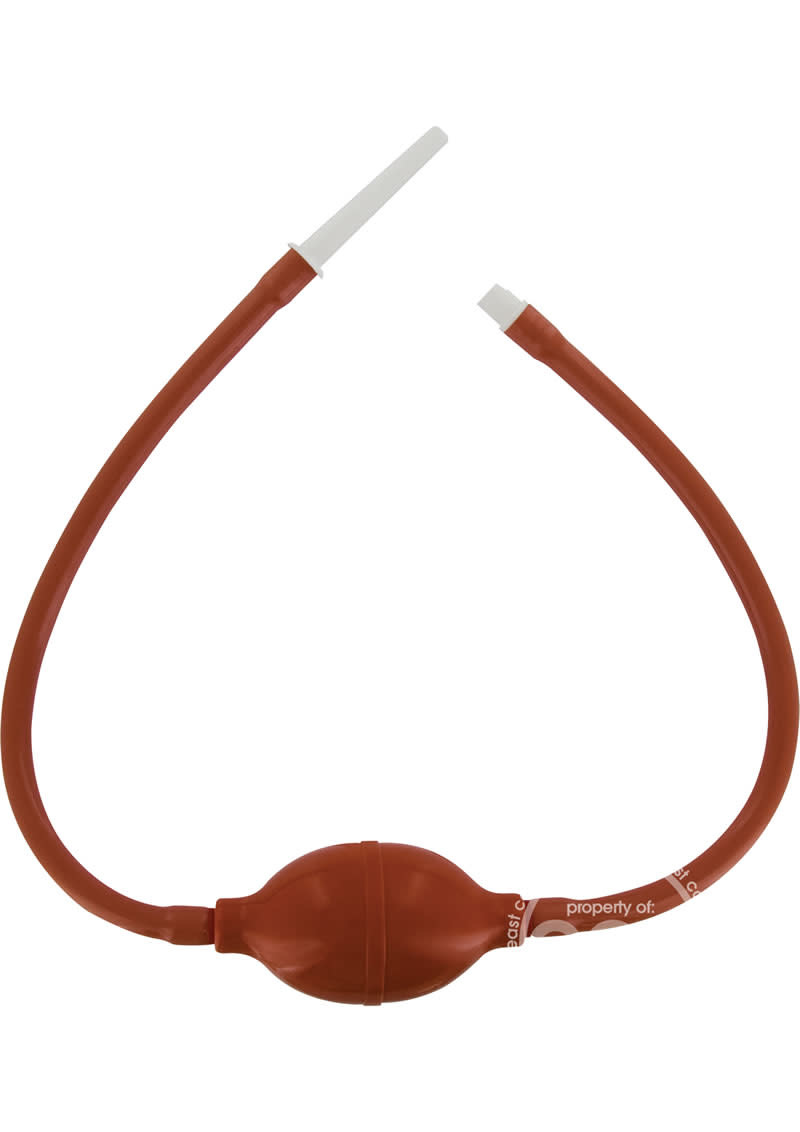 This one is a Higginson syringe one-way pump. This bulb and nozzle combo sends liquid from one end submerged in liquid to the other end fitted with a tapered nozzle. The nozzle may be inserted into the rectum or into another device, such as CleanStream Inflatable Butt Plug, Double Bulb Bardex-Style, or a Bag Drip System. Inserting the In-Line Accelerator into another device gives extra control to pump liquid in a steady stream.