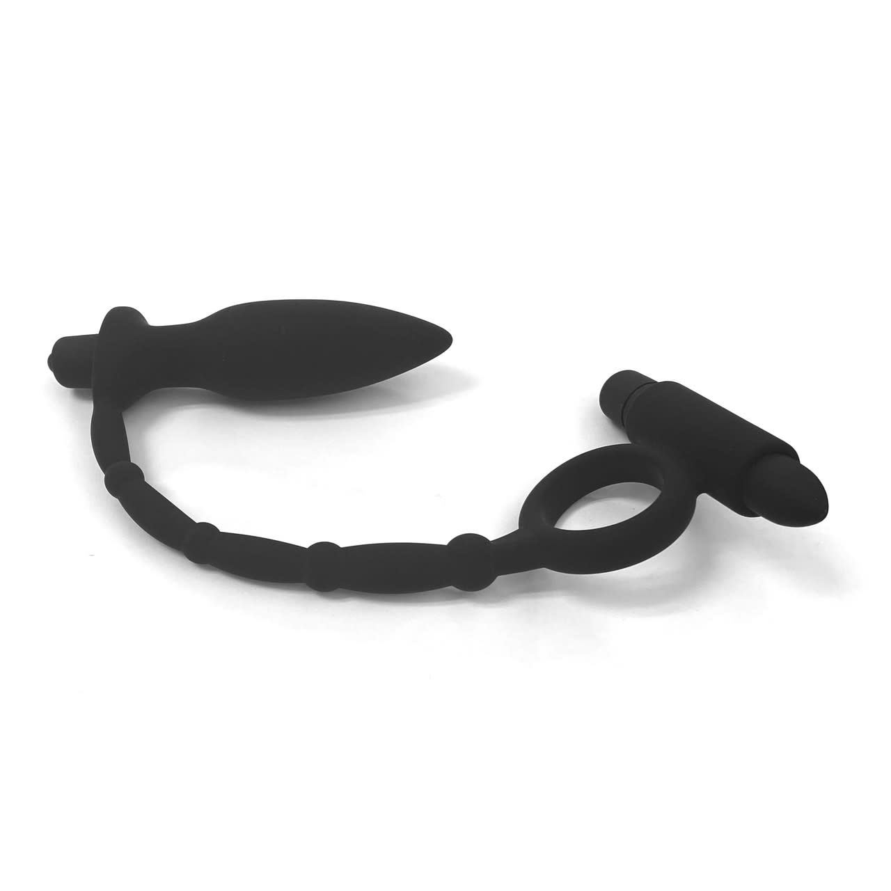 Experience intensely kinky bliss with this Bolt Thrust vibrating anal plug and attached vibrating C-ring! With this vibrating anal plug and connected vibrating C-ring, experience a mind-blowing combination of pleasure at once. Or, share the love as one partner inserts the vibrating plug while the other wears the vibrating constriction ring! The connecting perineal cord is beaded for extra stimulation and measures 6 inches long for kinky versatility. So immerse yourself - or selves - in immense rumbling bliss!