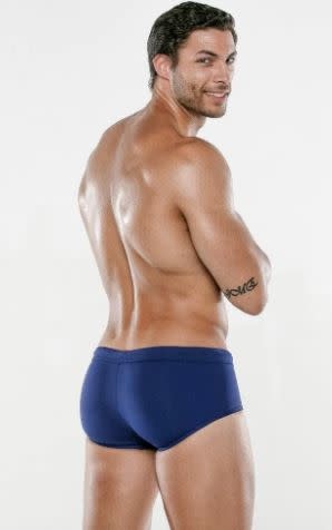 Square cut swim brief made of the finest fabric. Open contrast panel crisscrossing on left side. Our patented Power Shape system to enhance your masculine attributes and a high frequency logo on waist.