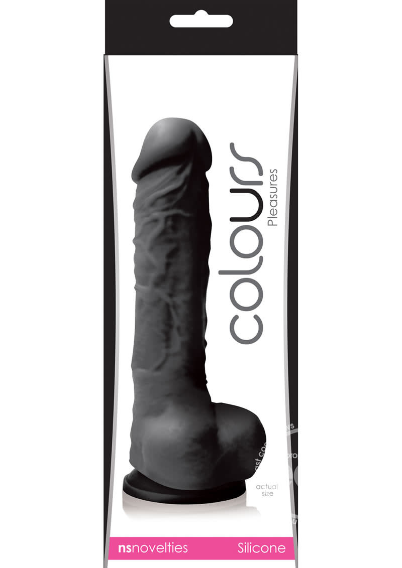 Colours realistic dongs are made from the best medical grade, body-safe silicone available. Non-porous for easy worry-free cleaning, these dongs are velvety soft to the touch, yet firm for effortless penetration. These naturally sized five-inch dongs are slightly curved and heavily veined, providing immeasurable pleasure. The versatile suction cup base is super strong for creative exploration. 6.5 inches by 2.5 inches.