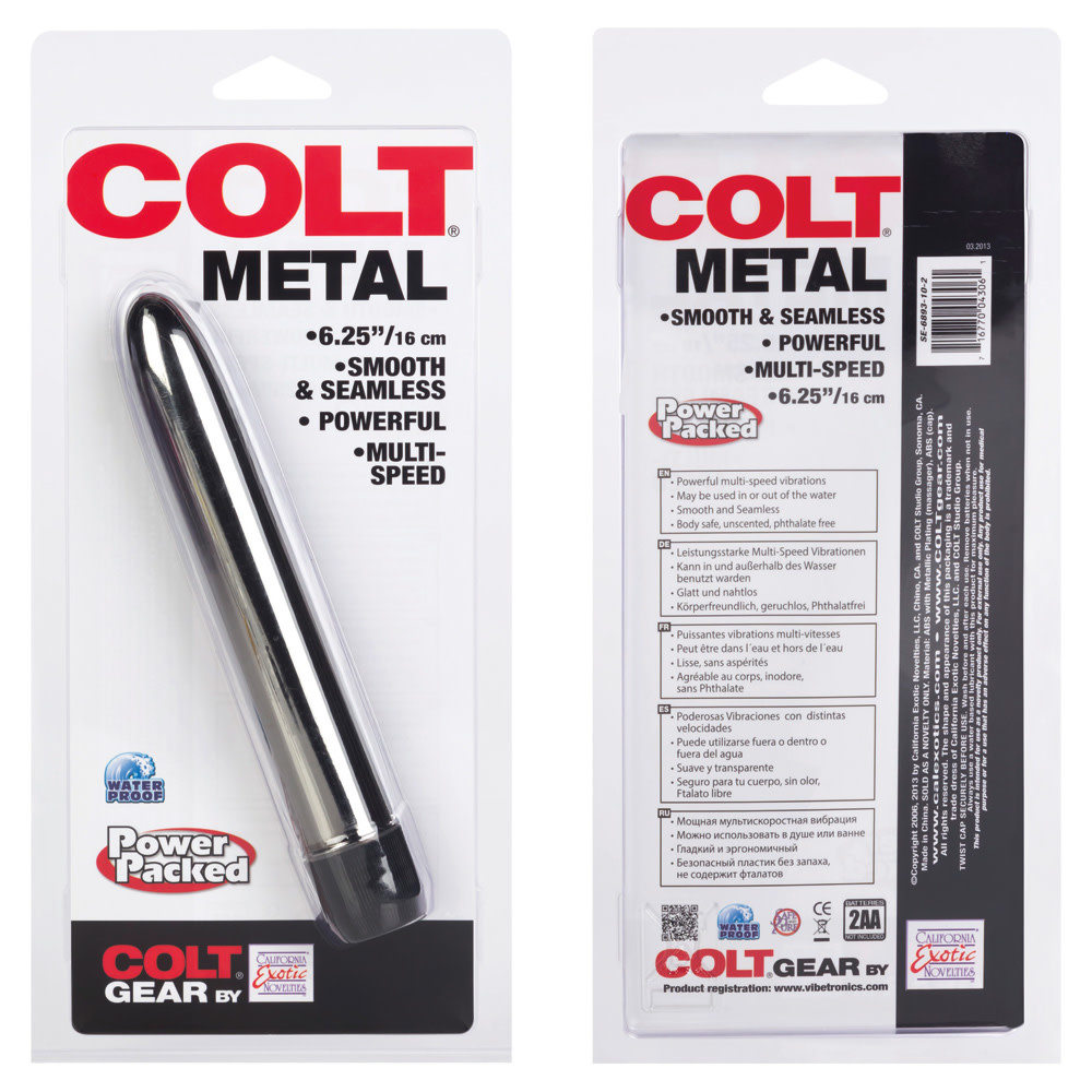 Sexy, sleek, and silver, that’s the COLT Metal™ - 6.25". This power-packed vibrator with a smooth, seamless finish offers multi-speed options for the ultimate in pulsation, vibration, and escalation. Styled in sexy ABS with silver plating, it’s both body safe and super pleasurable.