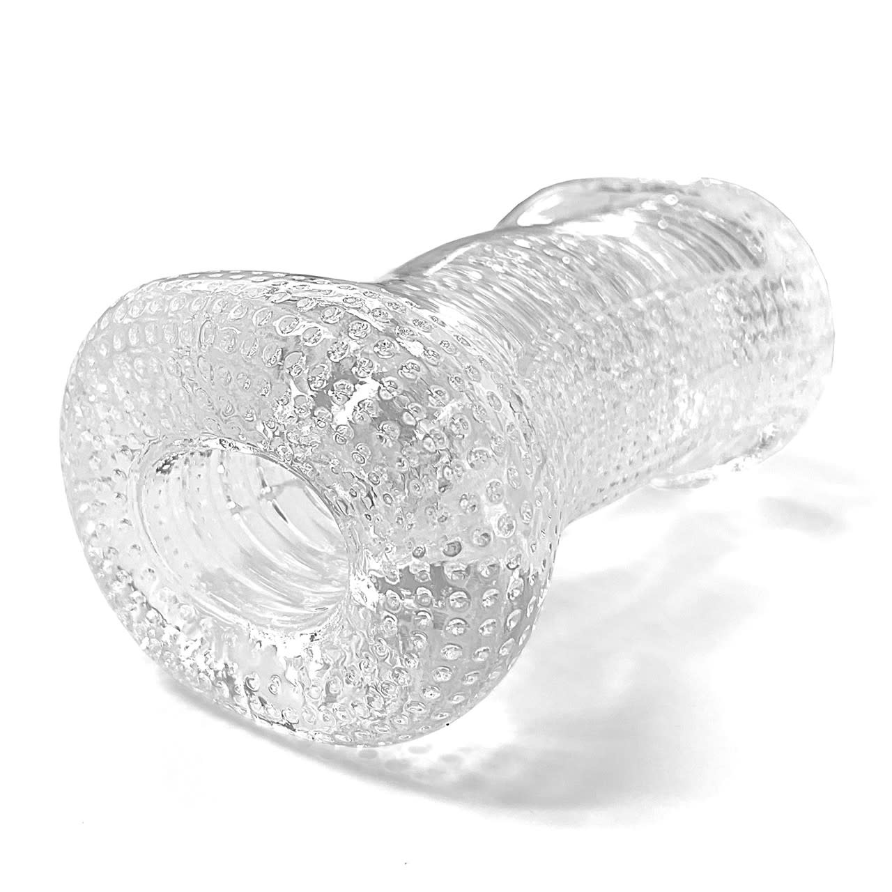 Enhance your sexual pleasure with the Kristal clear handheld stroker! The intensely textured chamber tapers at the closed end, applying breathtaking pressure to your tip. Watch your own enjoyment through the soft, transparent TPR for an added visual stimulation!