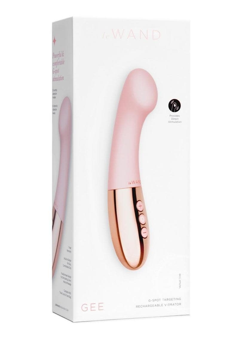 Pinpoint your pleasure anywhere with the Le Wand Gee, featuring a flexible neck design for fully controllable stimulation. The powerful, portable and adaptable size is perfect for a full range of situations. Use the flexible, curved neck of the Gee to pinpoint your most sensitive, internal spots for sensational and powerful vibrations anywhere. Perfect for solo sessions or as an addition to partner play. Gee comes complete with travel lock, LED charging indicator, and micro-suede travel pouch for discreet storage.