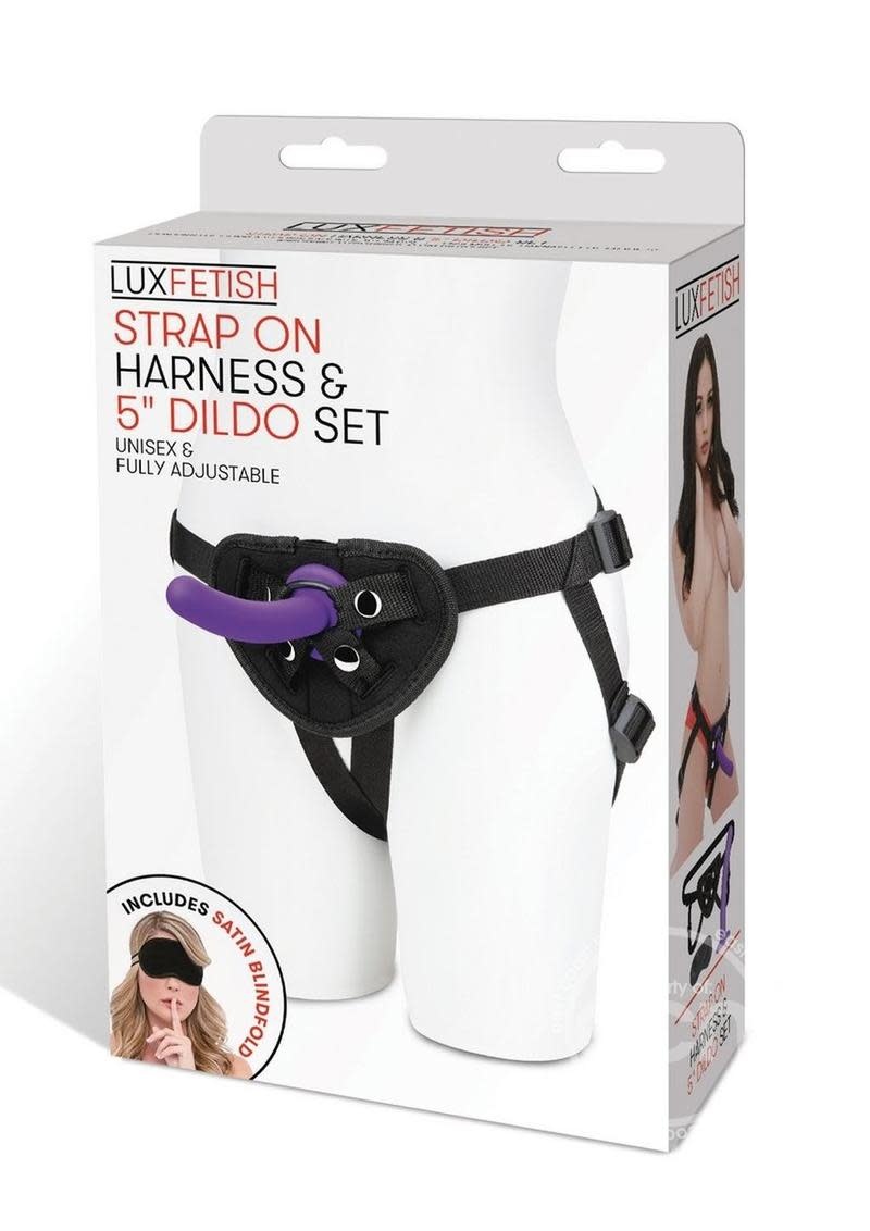 LUX STRAP ON HARNESS & 5" DILDO SET BLACK/PURPLE