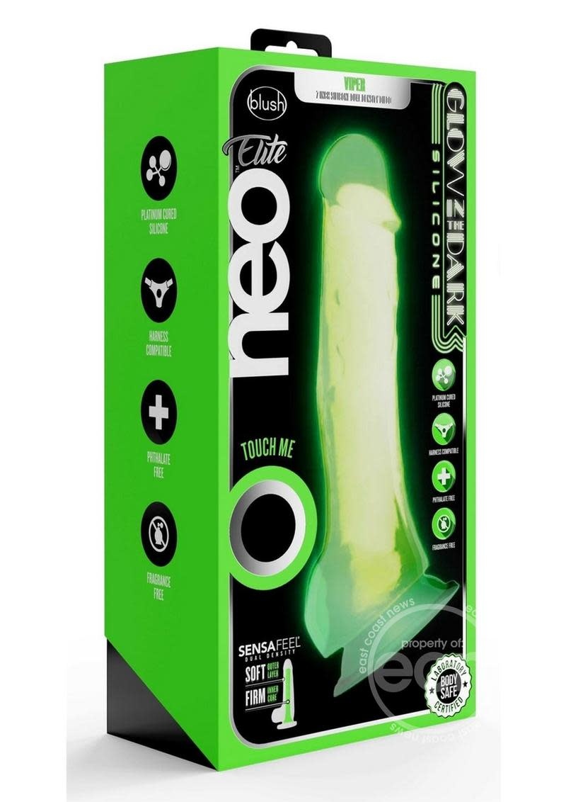NEO ELITE GLOW IN THE DARK DILDO WITH BALLS 7.5" GREEN