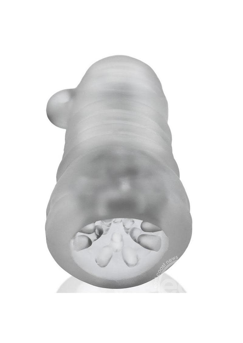 HOW TO: lube it up inside or do it in the shower filled with warm water and slide inside, slow twisting and squeezing or hard piston humping makes this stroker get the job done—handy hacking rubbery finger hole keeps this in your grip no matter how sloppy you bate.