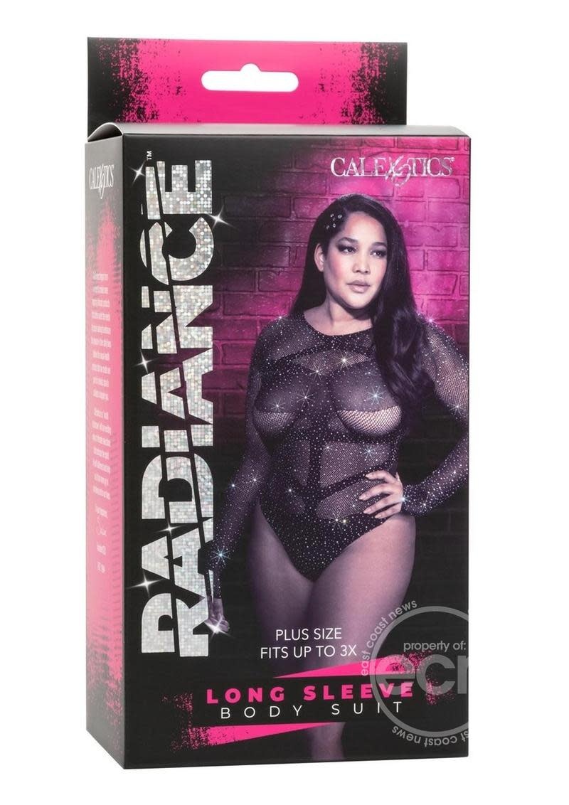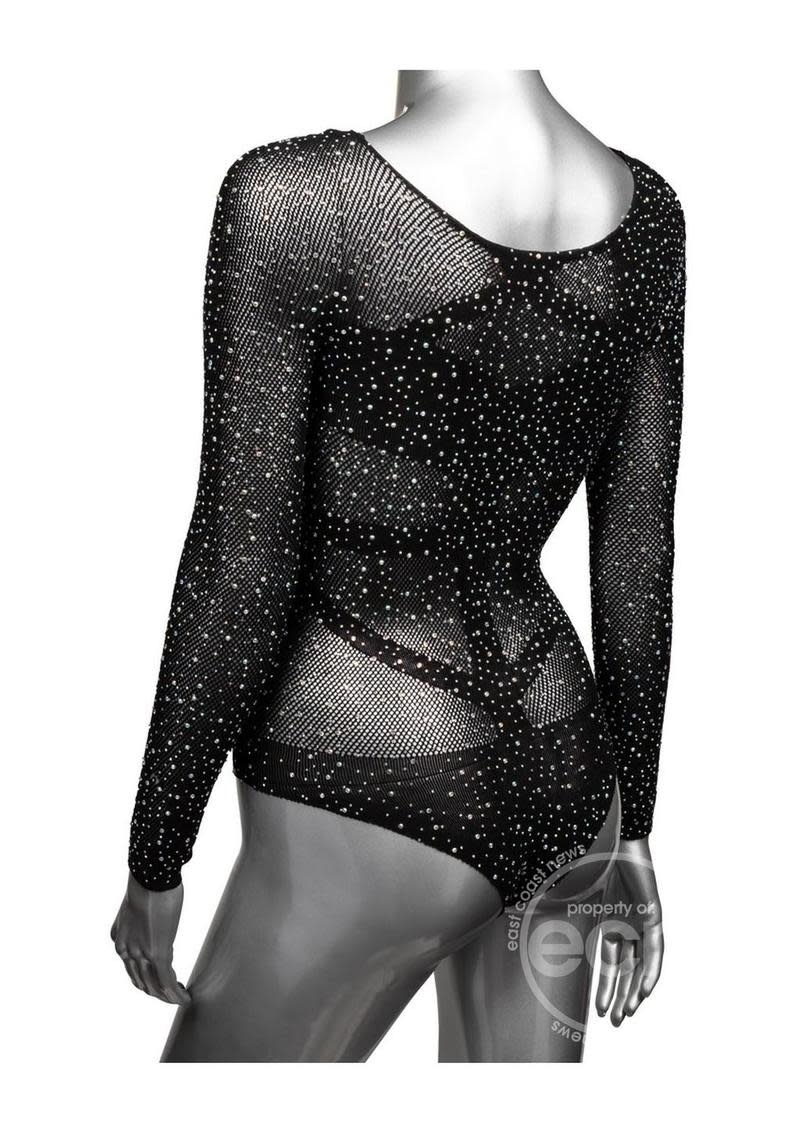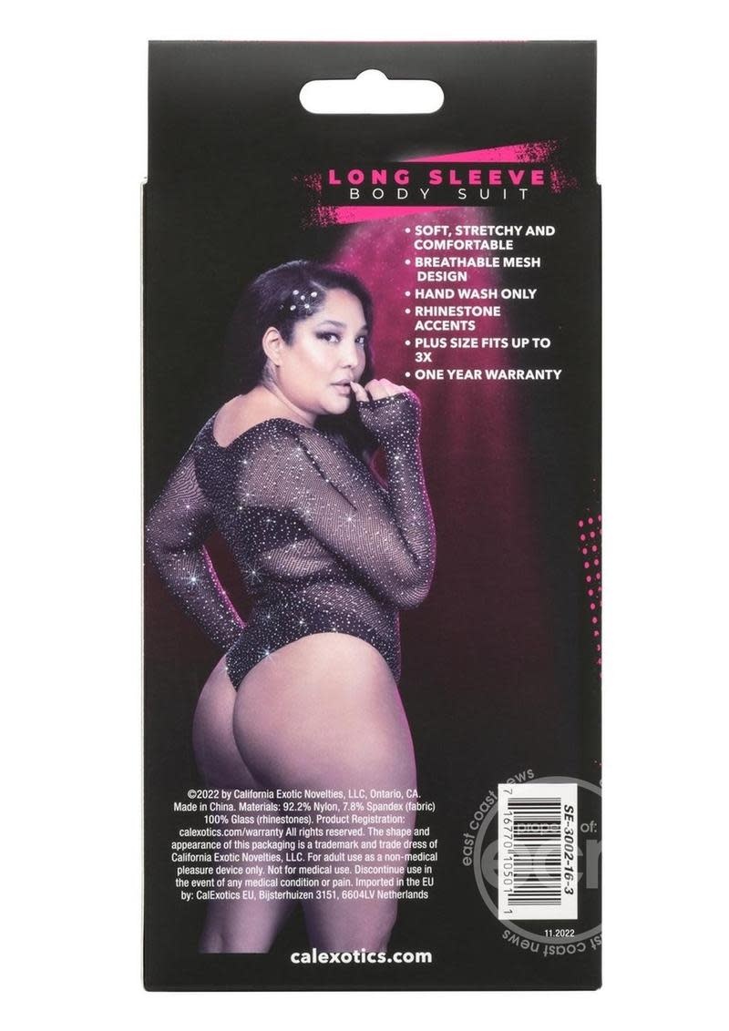 RADIANCE LONG SLEEVE BODY SUIT WITH RHINESTONES BLACK PLUS SIZE