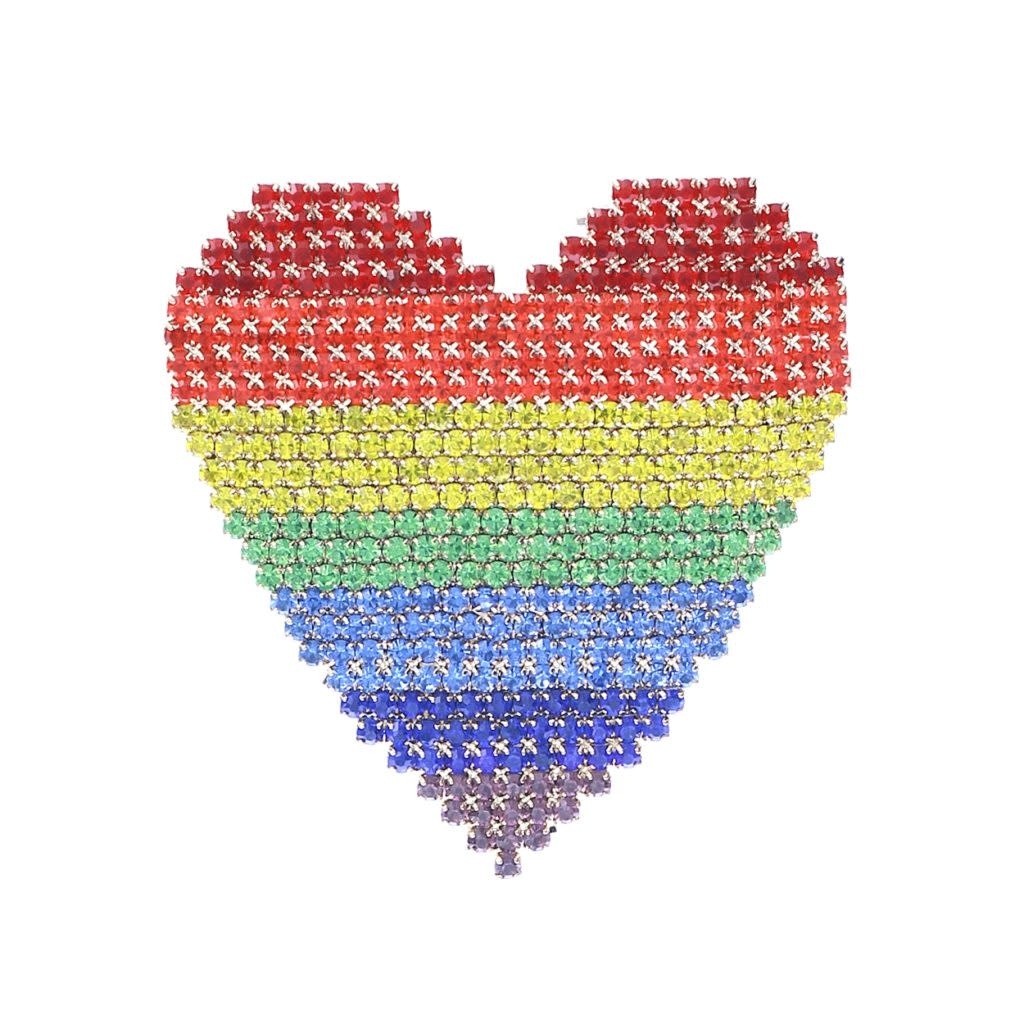 RAINBOW RHINESTONE HEART PIN