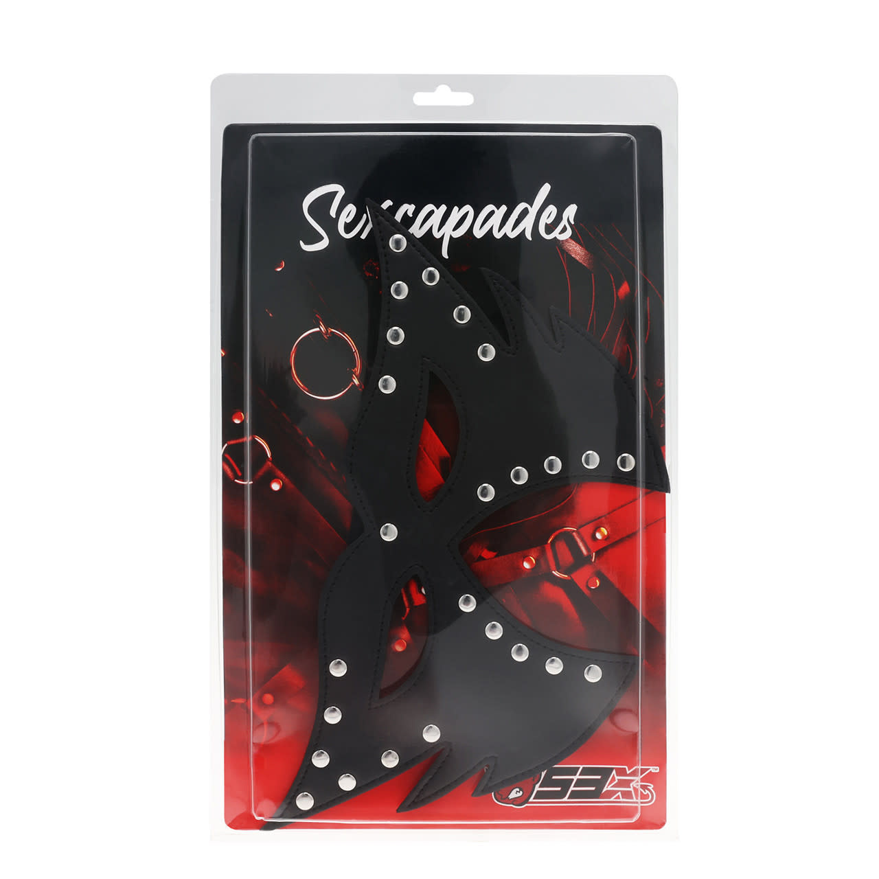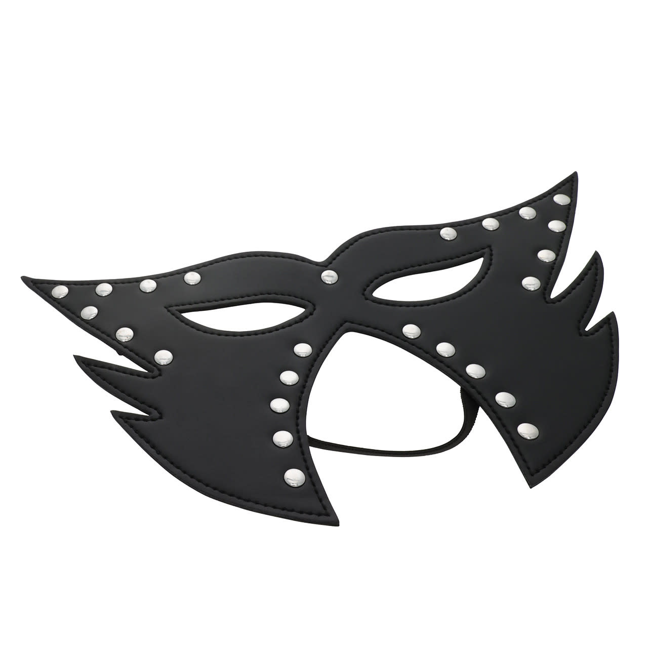 SEXCAPADES BLACK FAUX LEATHER FULL FACE STUDDED CAT MASK