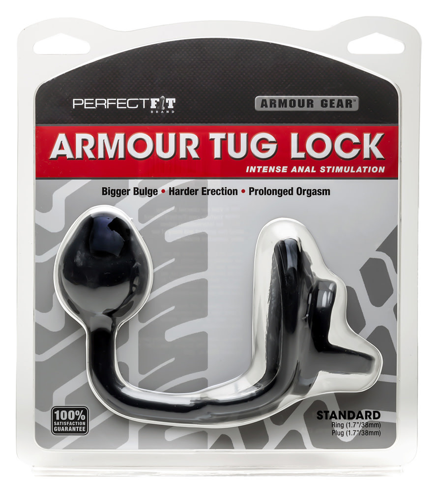 Armour Tug lock features the Armour Tug cock ring which is attached to a butt plug with a 5.5 inches circumference for added stimulation. The strap gives the user an amazing separation of your penis and scrotum while giving a bigger lift. It is designed with a revolutionary anatomical shape that hugs your torso and pushes your gear out entirely from your body to enhance your penis and scrotum. Armour Tug Lock is made of Perfect Fit Blend which is a proprietary blend of Silicone and Thermoplastic Rubber TPR developed to provide superior stretch, comfort and durability. Armour Tug Lock comes in the standard 1.7 inches size. Safe with water based lubes. Wash thoroughly with mild soap and water. This product is not compatible with latex products. Store separately. Perfect Fit Brand Products are sold, and intended for use strictly as adult novelty toys for entertainment. They are not intended for medical use and have not been clinically tested. No medical claims are warranted or implied by the use of these products. Color: Black.