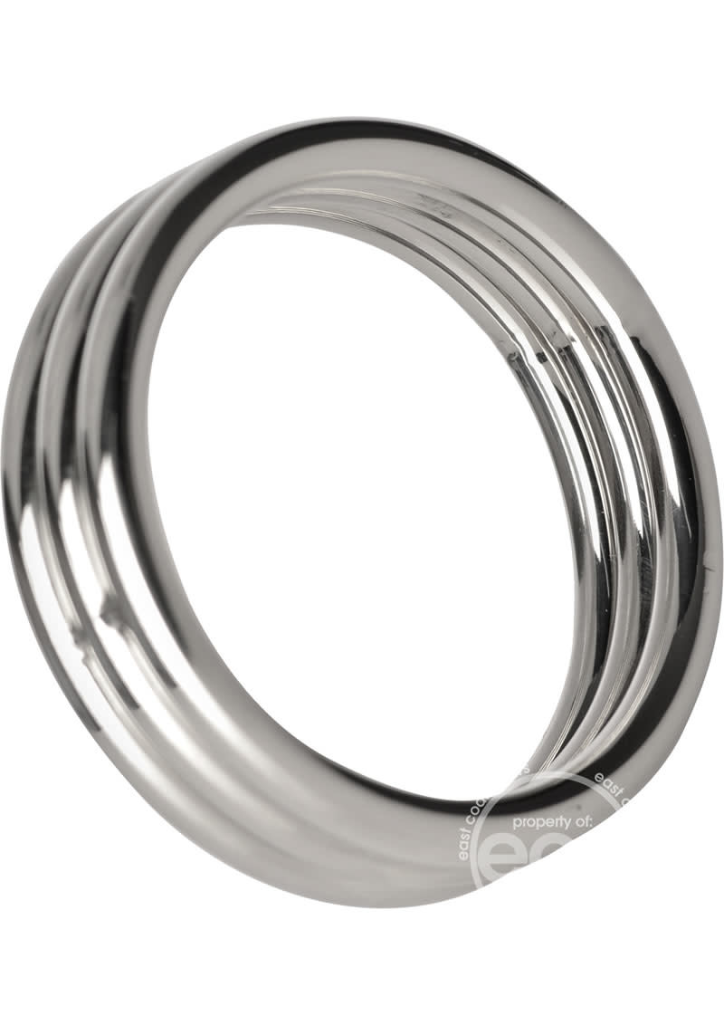 Take erections up a notch with The Echo stainless steel three tier cock ring. Each ring is fused to the next, creating a powerful look and long lasting erection enhancement. Stainless steel is non-porous, hygienic, easy to sterilize, temperature sensitive, and impact resistant. Prolong the pleasure!