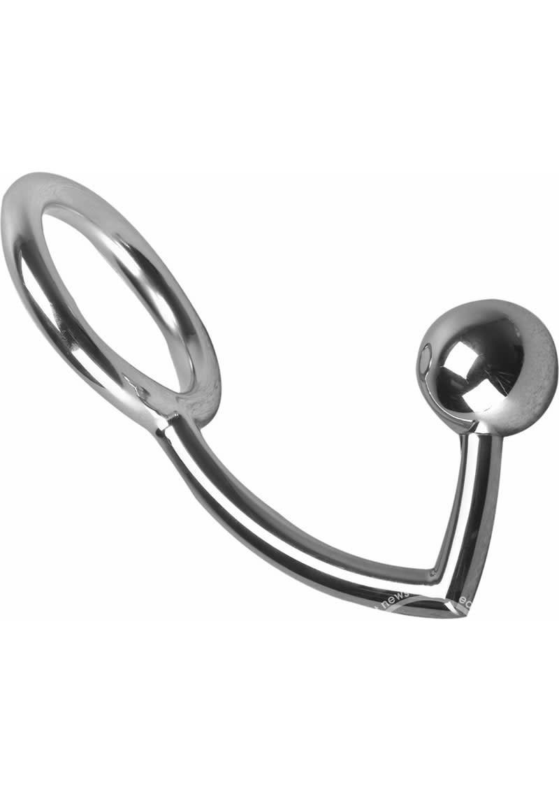 The Anal Intruder. A device for the phallus and an intrusion stimulator for the prostate that keeps the wearer subdued in pleasure and disquiet. The Anal Intruder is a stainless steel, 2 inches cock ring and a 1.25 inches anal plug all in one. With a unique design allowing the user to maintain a erection all the while keeping their ass intruded upon by a steel round anal ball. Is it a reward, or punishment? You decide! Measurements: 5.75 inches overall length, Ring has 2.05 inches inner diameter, Anal Ball is 1.25 inches in diameter, with 2.25 inches insertable length including stem, Bridge between cock ring and anal insert is 2.88 inches long. Material: Stainless Steel Ring and Bar, Chrome Plated Steel Ball. Category: Top Selling Toys for Men, Anal Toys, Master Series. The Anal Intruder from Sex Toy Distributing.