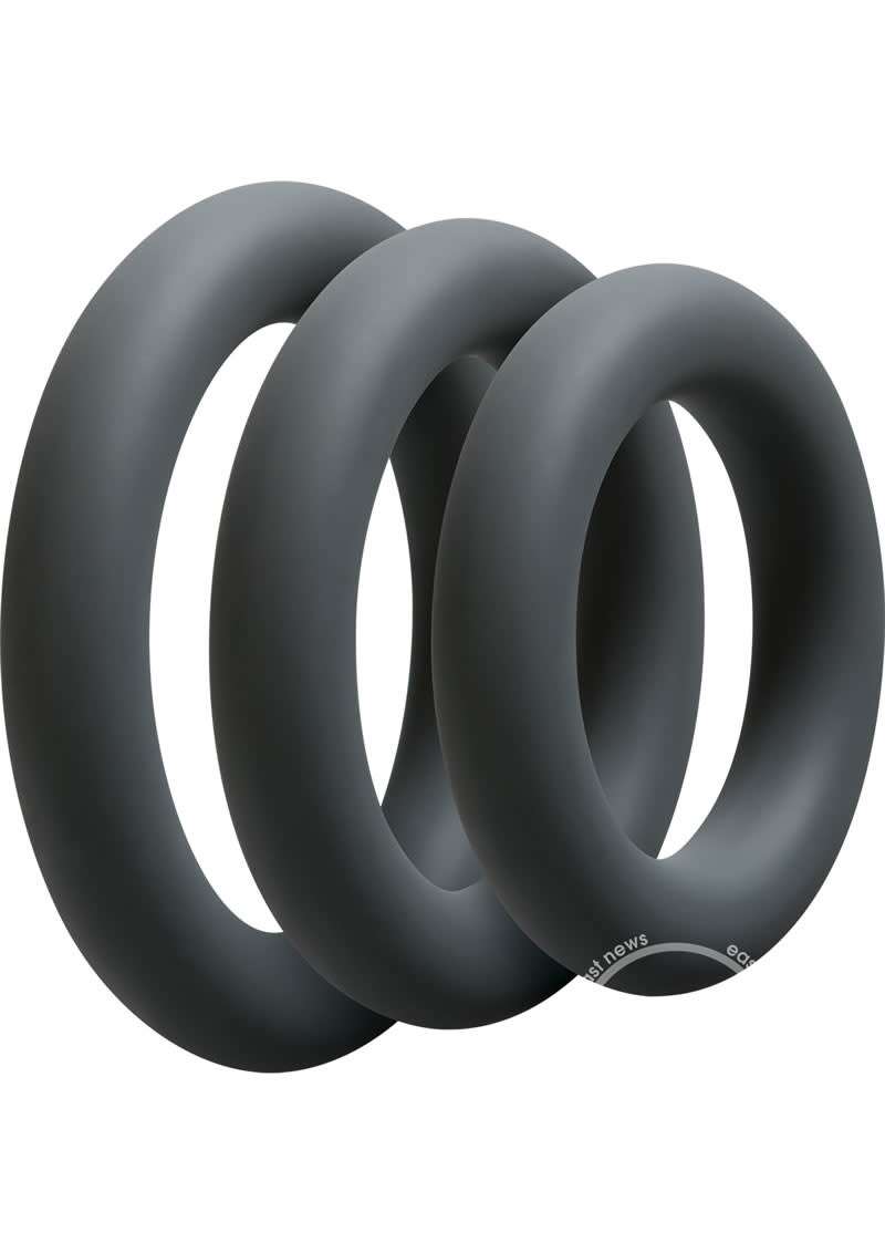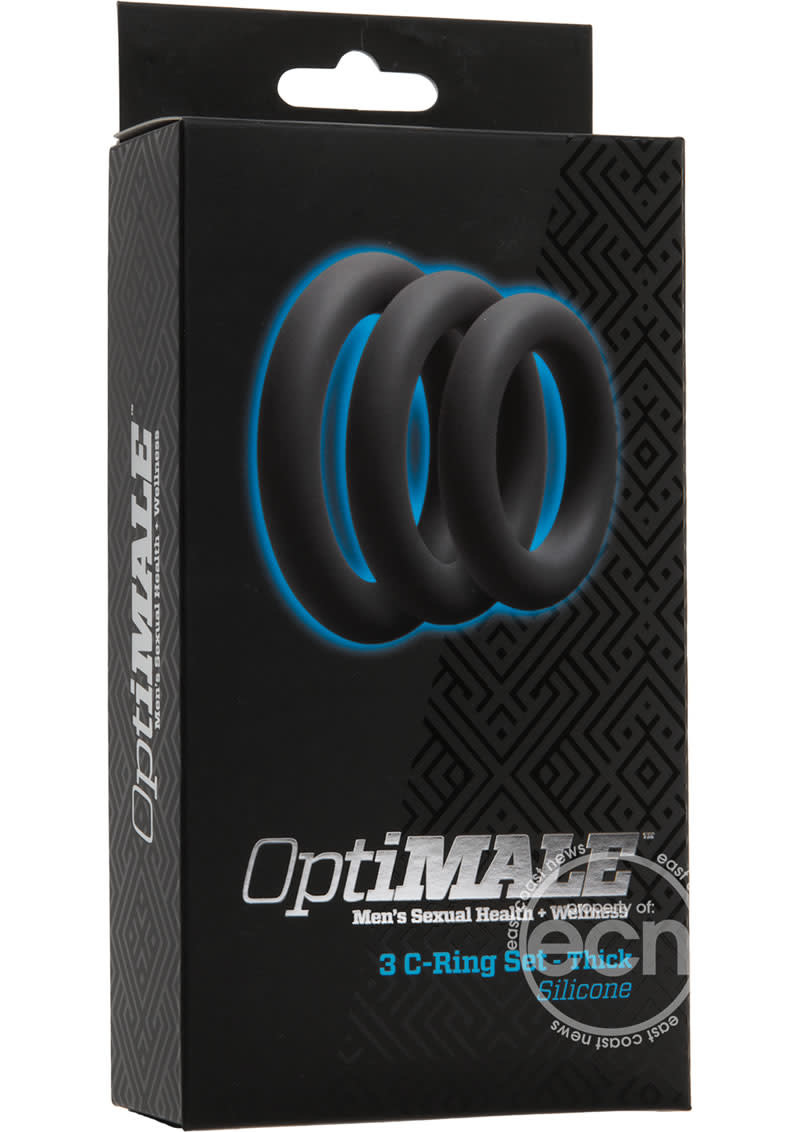 Optimize your experience with these silicone cock rings! The OptiMALE Thick C-Ring Set offers enhanced size and girth with three rings in 40mm, 45mm, and 50mm diameters. These rings are ultra-stretchable for easy use around the shaft or testicles, maintaining those long-lasting erections you’ve always dreamed of, and prolonging your ejaculation. Available in Black and Slate; phthalate-free silicone.