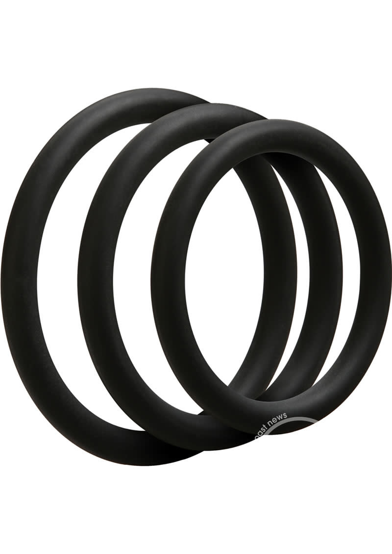 Optimize your experience with these silicone cock rings! The OptiMALE Thin C-Ring Set offers enhanced size and girth with three rings in 40mm, 45mm, and 50mm diameters. These rings are ultra-stretchable for easy use around the shaft or testicles, maintaining those long-lasting erections you’ve always dreamed of, and prolonging your ejaculation. Available in Black and Slate; phthalate-free silicone.