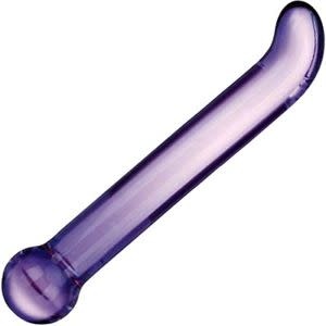 Artistically crafted, purple tinted shaft features curved head for direct G-spot stimulation. Bulbous handle can also be used for creative penetration. Fracture-resistant and hypoallergenic, this toy can be easily cleaned. Retains heat and cold for increased stimulation. Compatible with all lubricants.