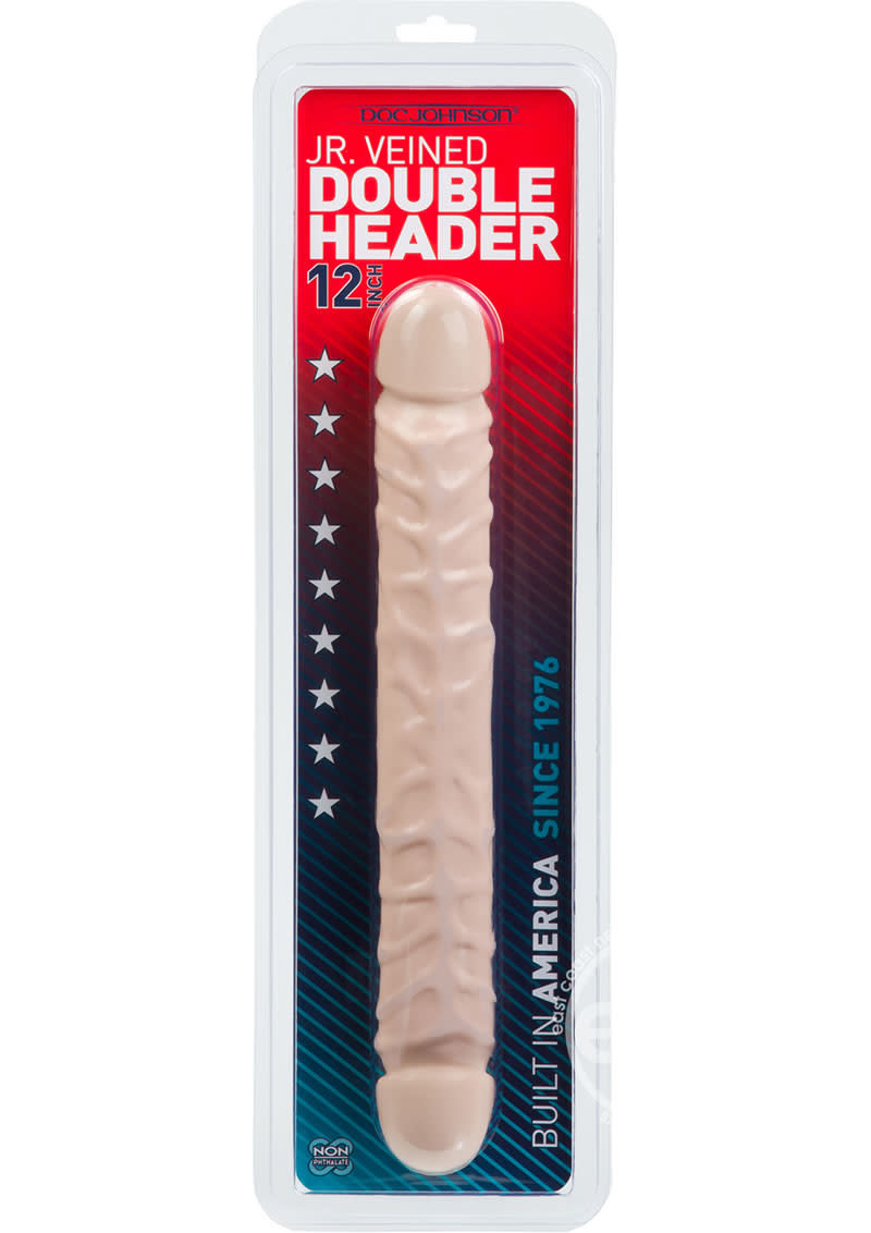 Warmed up for a classic doubleheader? Doc Johnsons 12 inch Jr. Double Header Dong has a phallic head on each end and a veined shaft for stimulating double penetration. The dong is flexible for individuals and just the right length to share with a partner. It is made from phthalate-free body safe material and is Proudly Made in America.