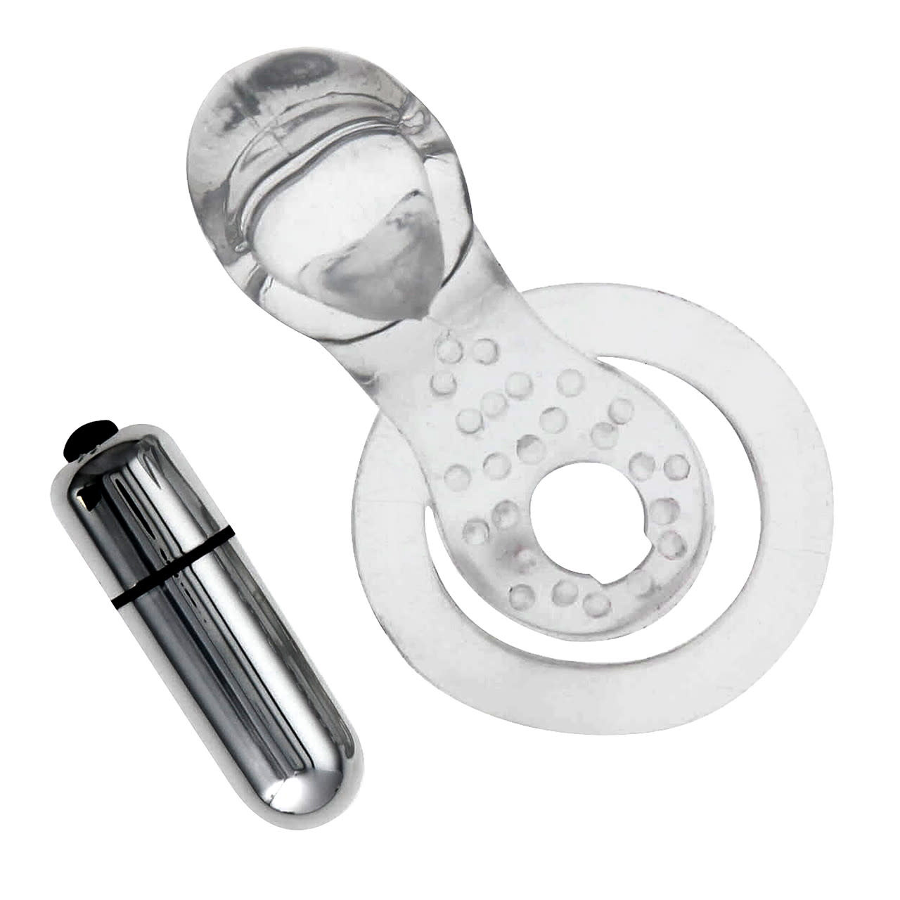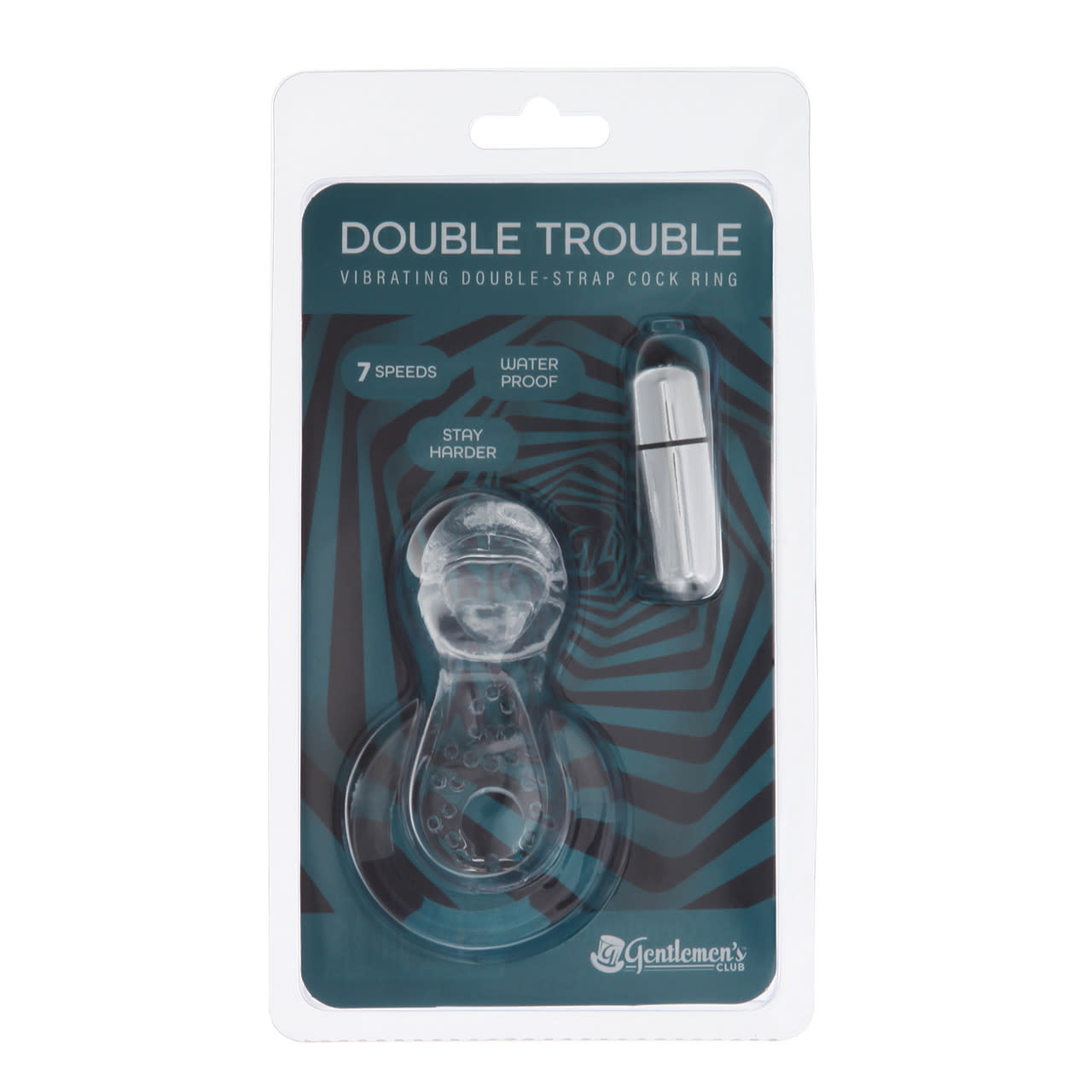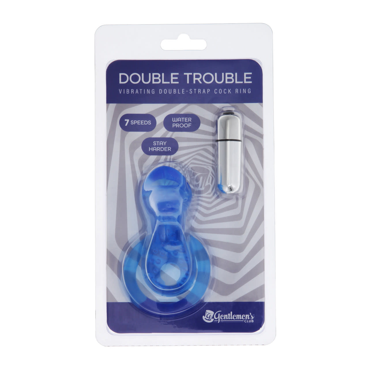 Heighten your intimate pleasure and satisfaction with the Double Trouble vibrating constriction ring! Enjoy 7 unique vibration patterns from the removable bullet vibe, while feeling the blissful squeeze of the rings. Your receiving partner will feel blended stimulation from the vibrations carries through the flickering tongue, as well as the intensely textured front ring!