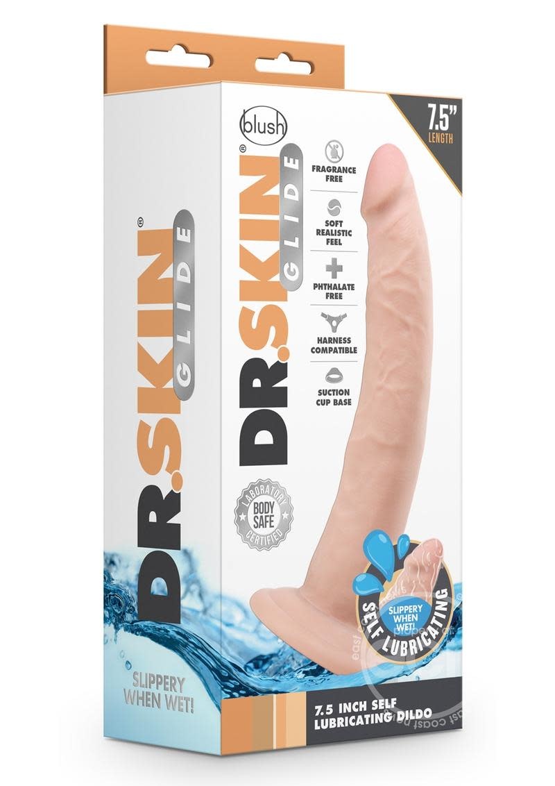The Dr. Skin Glide 7.5 Inch Self Lubricating Dildo is a realistic, self lubricating toy that only needs a bit of water to get slippery!