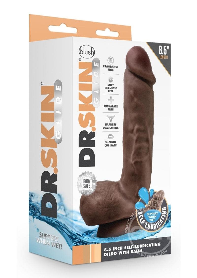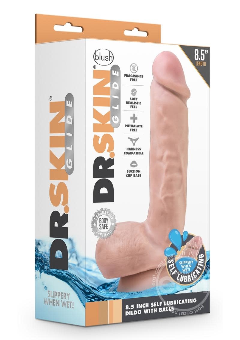 The Dr. Skin Glide 8.5 Inch Self Lubricating Dildo with Balls is a realistic, self lubricating toy that only needs a bit of water to get slippery!