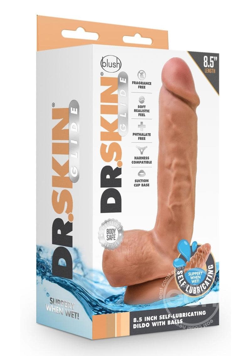 DR SKIN GLIDE SELF LUBRICATING DILDO WITH BALLS 8.5 inch