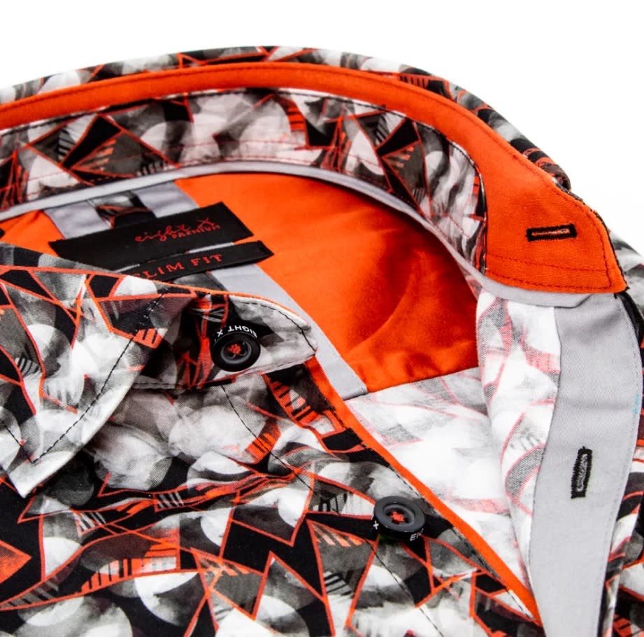 With a sharp, geometric pattern and bright orange trim, Blur & Sharpen is as audacious as the man who wears it. Cut in our signature Slim Fit for a confident, flattering fit.